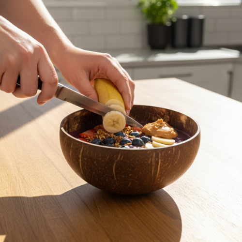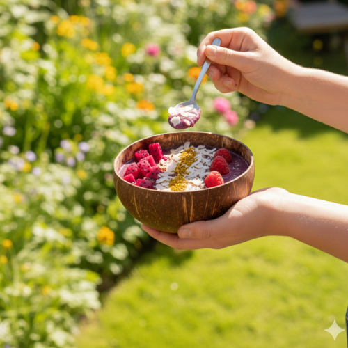 Na jaren ondernemen en werken aan gezondheid groeide het idee om een smoothie bowl te maken die wél past in het dagelijkse leven.