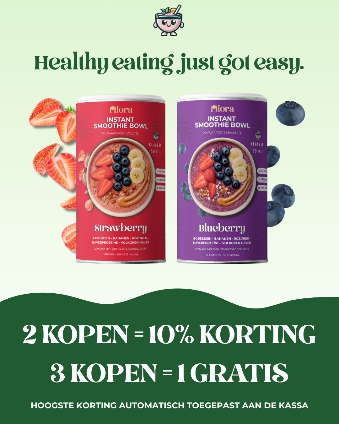 Vanuit België, met Nederlandse roots, ontstond Miora: een instant smoothie bowl op basis van slechts 5 natuurlijke ingrediënten, zonder toevoegingen. We gebruiken gevriesdroogd fruit om smaak en voedingswaarde te behouden, zonder bewaarmiddelen.